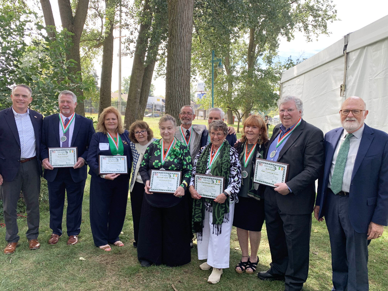 The new members for 2022 of the Michigan Irish American Hall of Fame were inducted at a ceremony at noon at the Michigan Irish Music Festival in Muskegon, Michigan, on Saturday, September 17, 2022. Below is a gallery of pictures taken on the day of the event. Activities included a breakfast in honor of the inductees, the induction ceremony on the County Kerry Stage, followed by a tea-room reception on the festival grounds.